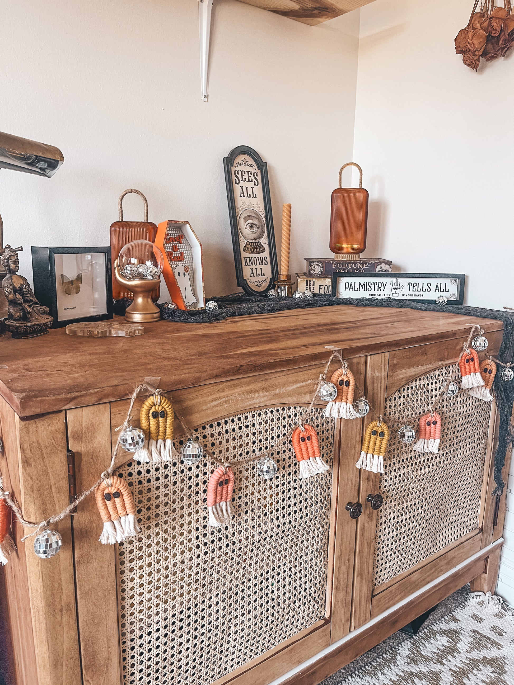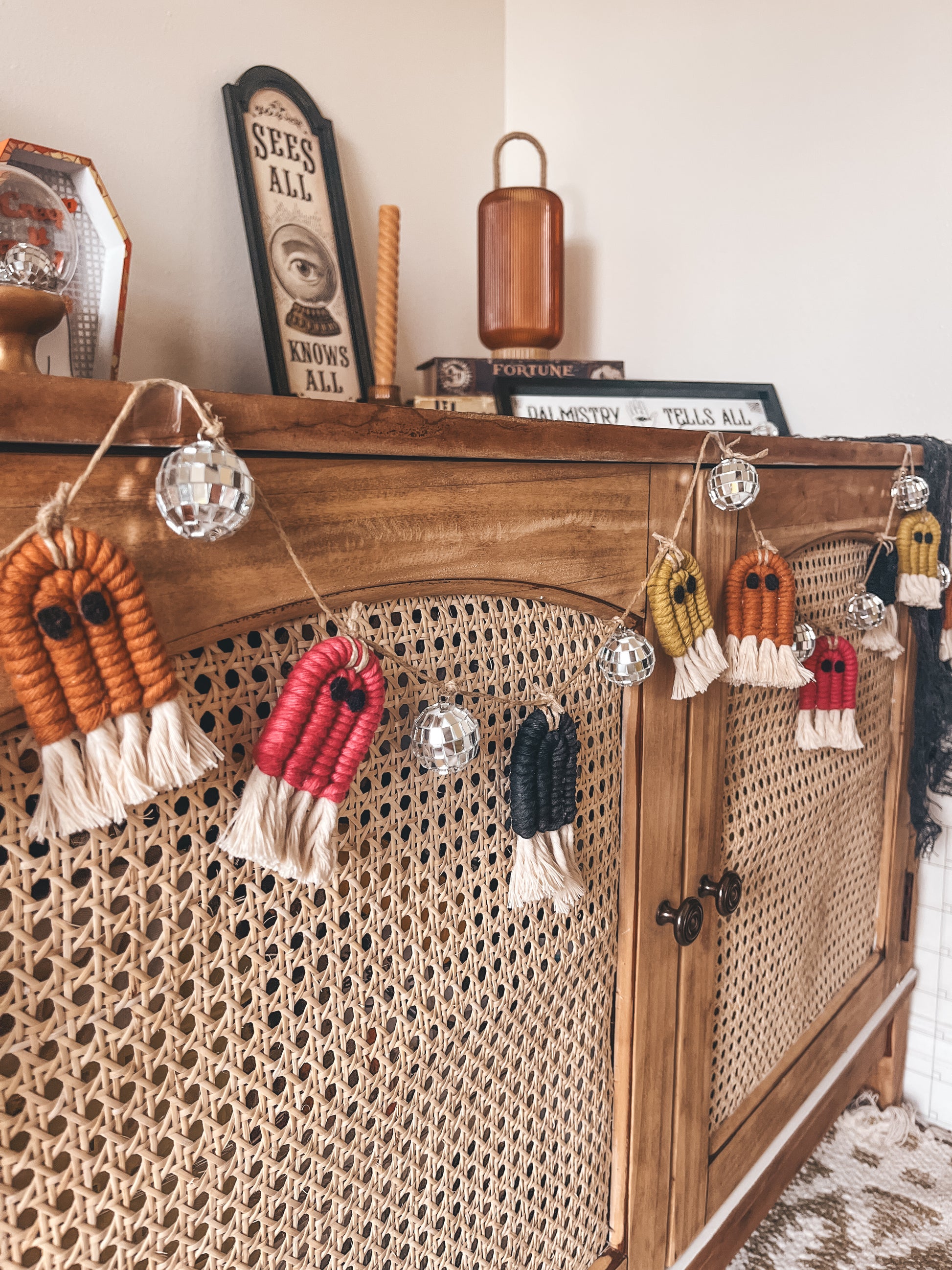 Add a cute, playful touch to your Halloween decor with a Ghosty Garland! This unique garland combines disco balls with your favorite spooky ghosts. Perfect for jazzing up your Halloween mantle. This garland will haunt your home in the most stylish way possible. (Boo-tiful decoration guaranteed!)